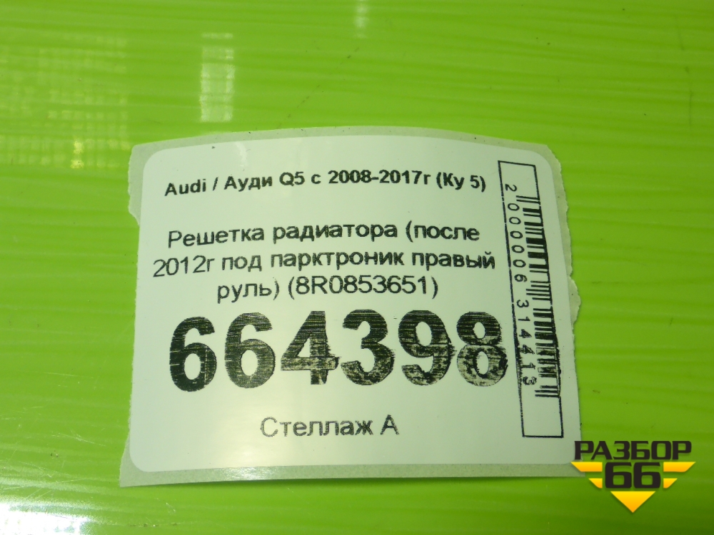 Решетка радиатора (после 2012г под парктроник правый руль) (8R0853651) для Audi Q5 c 2008-2017г (Ку 5) в Екатеринбурге