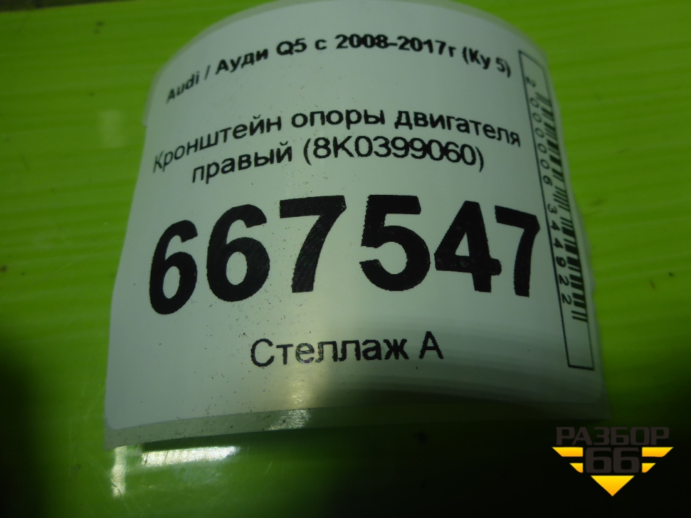 Кронштейн опоры двигателя правый (8K0399060) для Audi Q5 c 2008-2017г (Ку 5) в Екатеринбурге