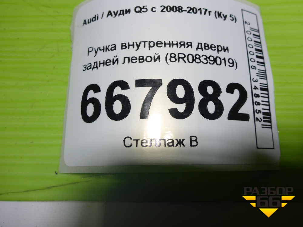 Ручка внутренняя двери задней левой (8R0839019) для Audi Q5 c 2008-2017г (Ку 5) в Екатеринбурге
