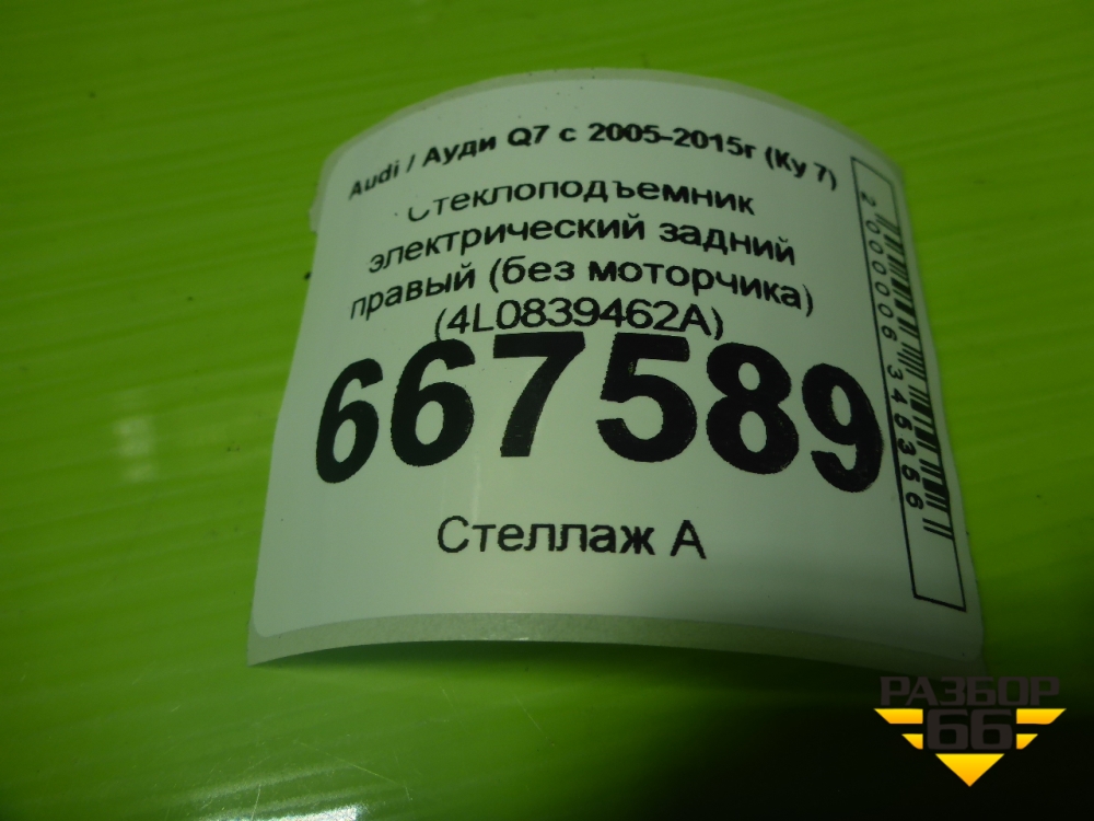 Стеклоподъёмник электрический задний правый (без моторчика) (4L0839462A) для Audi Q7 c 2005-2015г (Ку 7) в Екатеринбурге