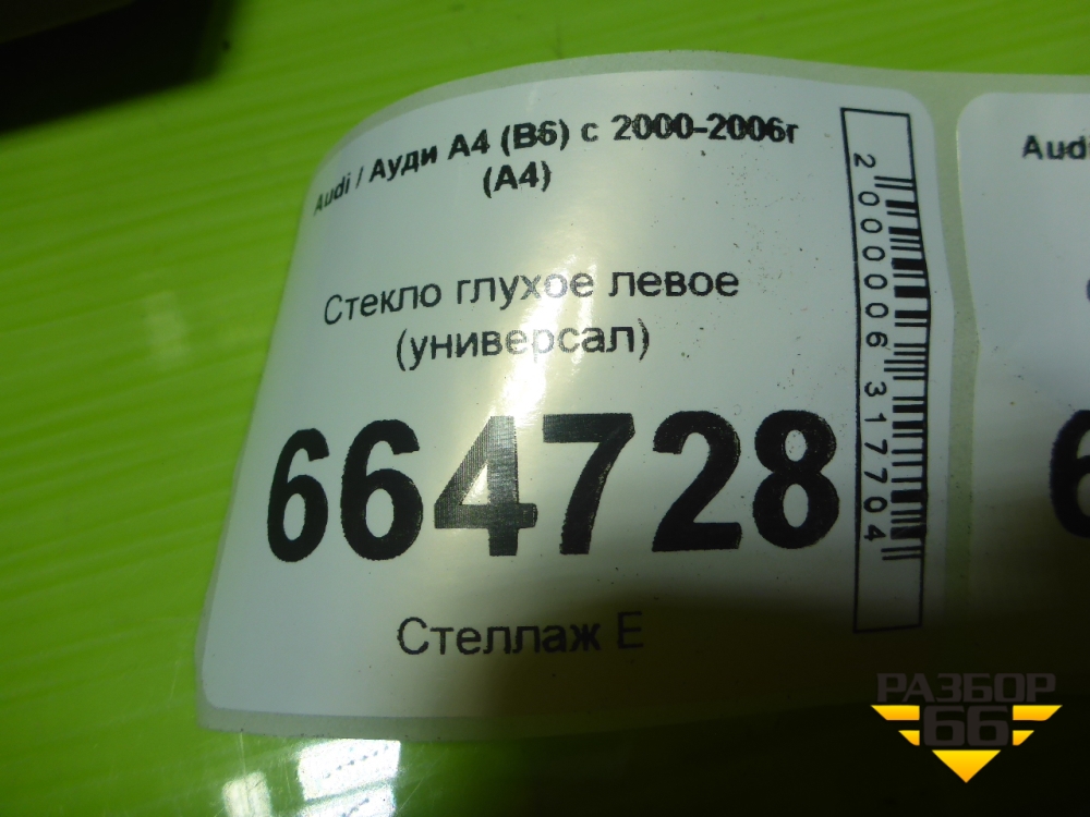 Стекло глухое левое (универсал) для Audi A4 (В6) с 2000-2006г (А4) в Екатеринбурге