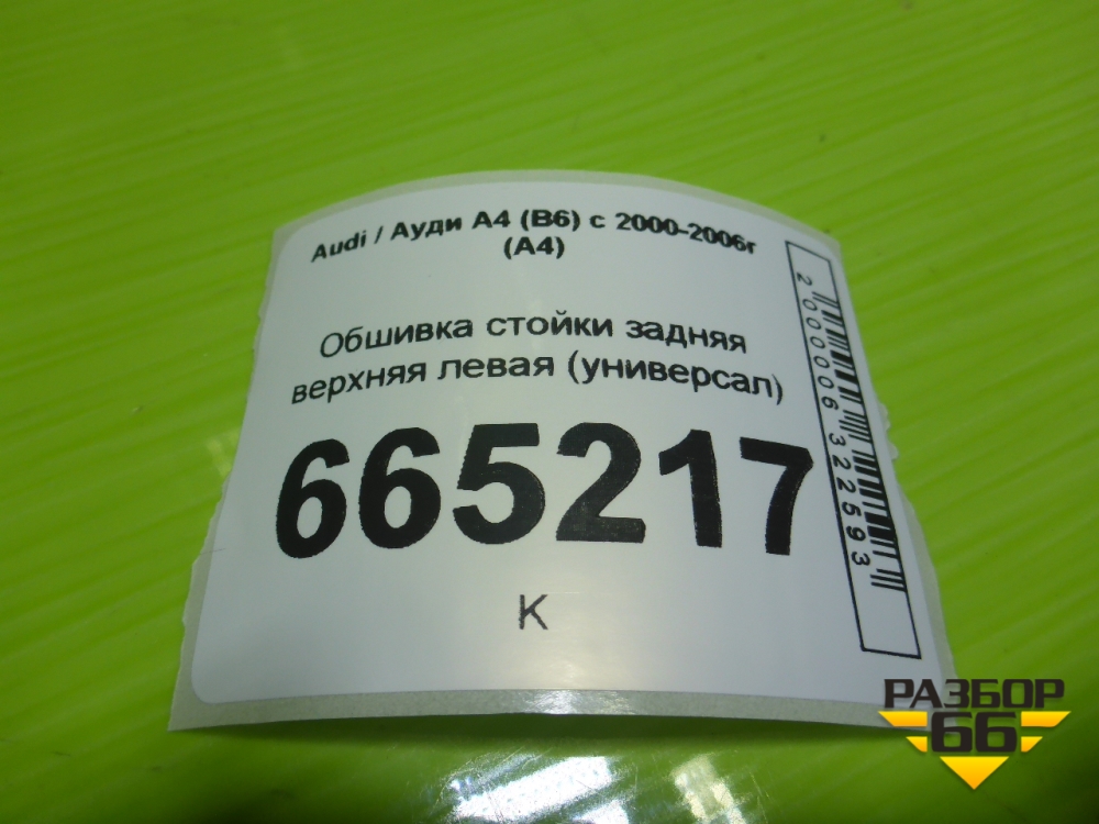 Обшивка стойки задняя верхняя левая (универсал) (8E9868631) для Audi A4 (В6) с 2000-2006г (А4) в Екатеринбурге