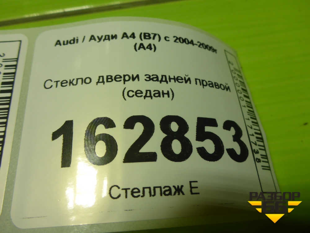 Стекло двери задней правой (седан) для Audi A4 (В7) с 2004-2009г (А4) в Екатеринбурге