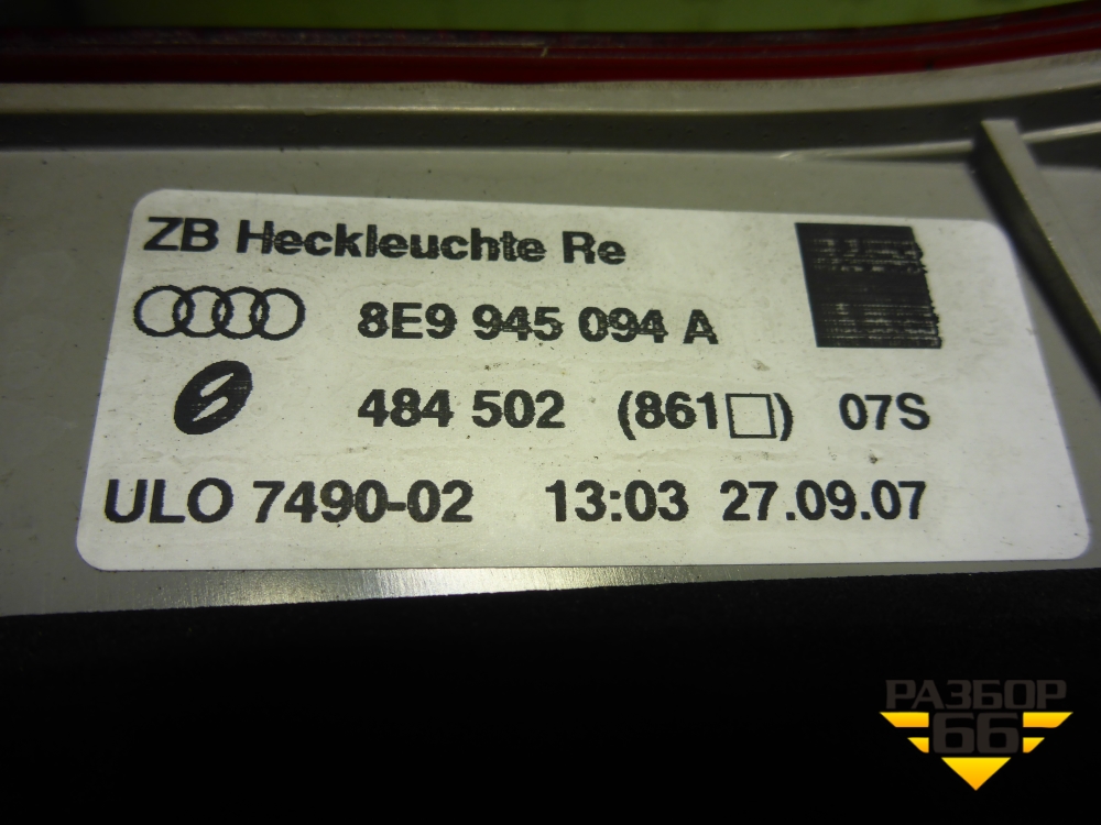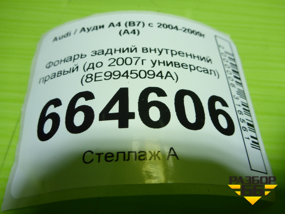 Фонарь задний внутренний правый (до 2007г универсал) (8E9945094A) для Audi A4 (В7) с 2004-2009г (А4) в Екатеринбурге