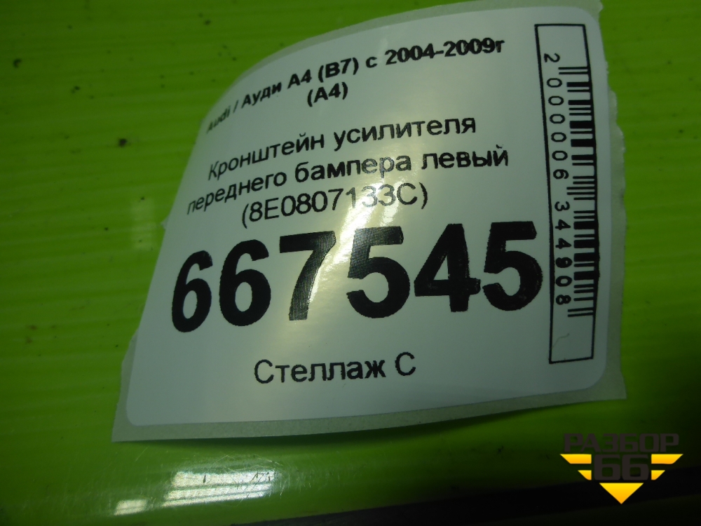 Кронштейн усилителя переднего бампера левый (8E0807133C) для Audi A4 (В7) с 2004-2009г (А4) в Екатеринбурге