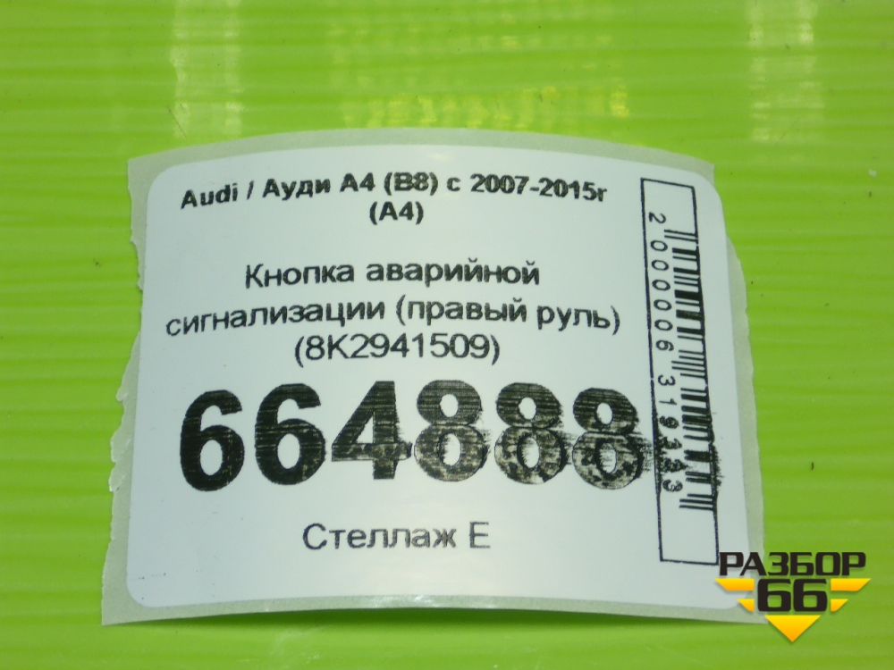 Кнопка аварийной сигнализации (правый руль) (8K2941509) для Audi A4 (В8) с 2007-2015г (А4) в Екатеринбурге