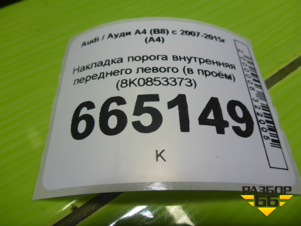 Накладка порога внутренняя переднего левого (в проём) (8K0853373) для Audi A4 (В8) с 2007-2015г (А4) в Екатеринбурге