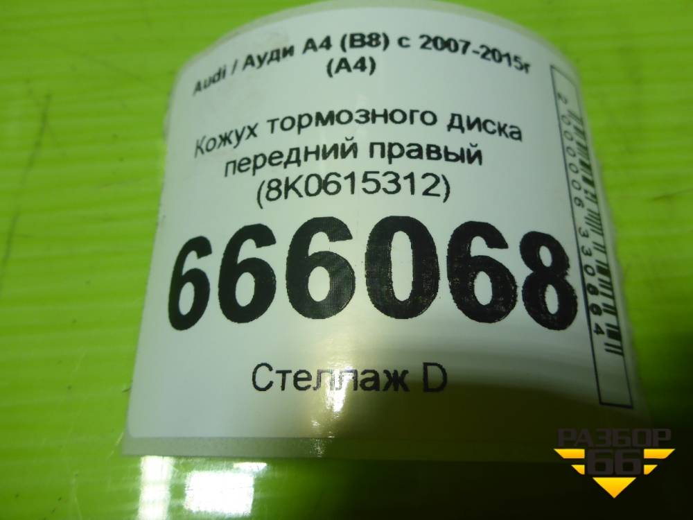Кожух тормозного диска передний правый (8K0615312) для Audi A4 (В8) с 2007-2015г (А4) в Екатеринбурге