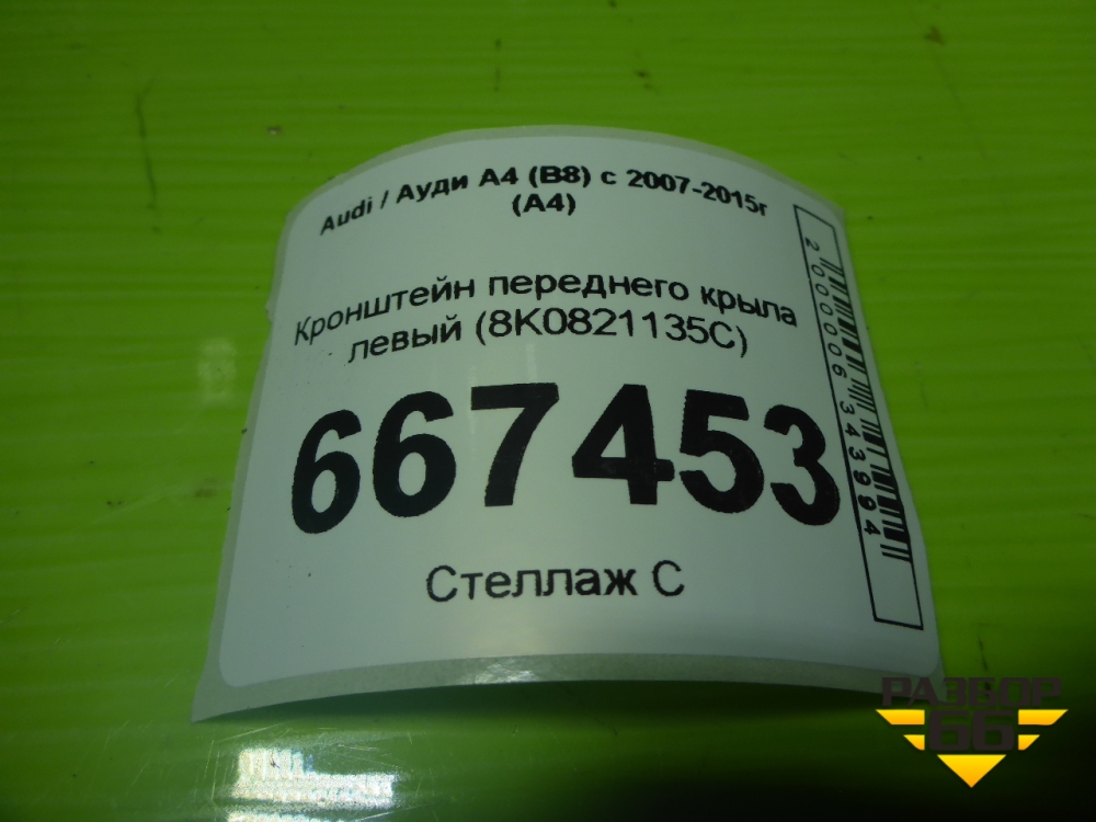 Кронштейн переднего крыла левый (8K0821135C) для Audi A4 (В8) с 2007-2015г (А4) в Екатеринбурге