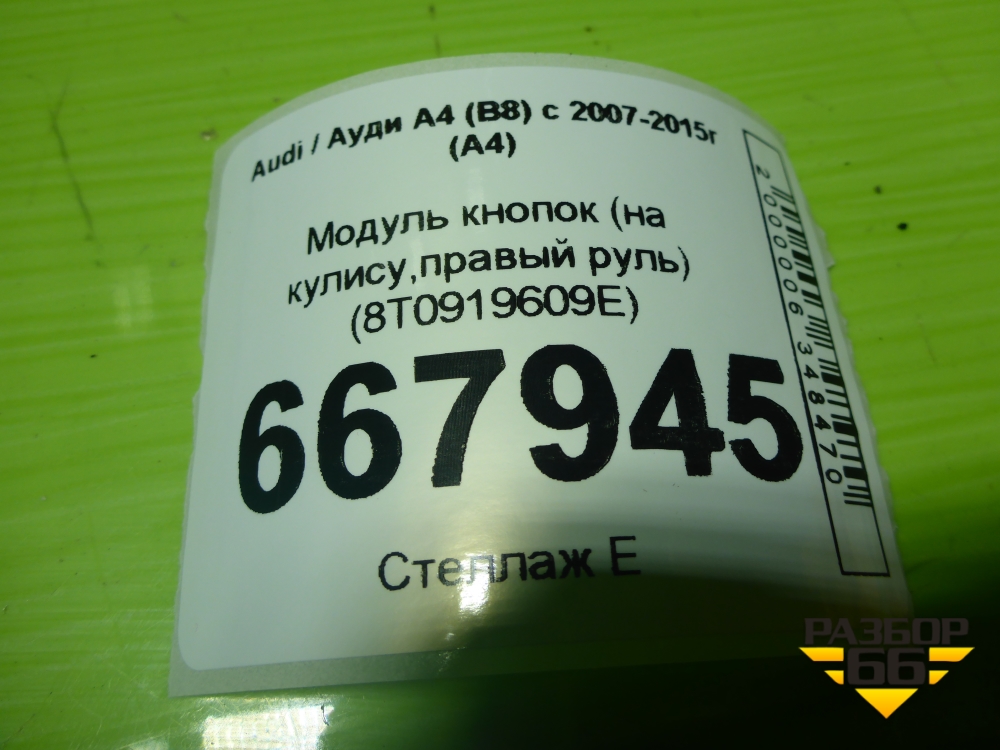 Модуль кнопок (на кулису,правый руль) (8T0919609E) для Audi A4 (В8) с 2007-2015г (А4) в Екатеринбурге