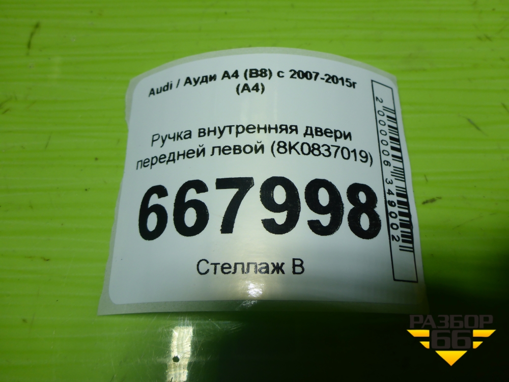 Ручка внутренняя двери передней левой (8K0837019) для Audi A4 (В8) с 2007-2015г (А4) в Екатеринбурге