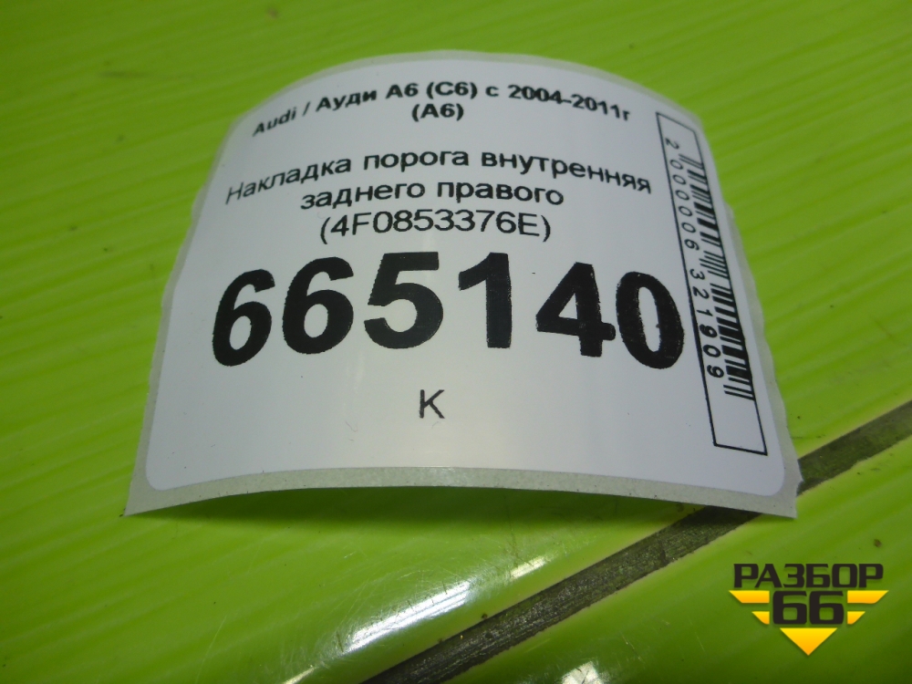 Накладка порога внутренняя заднего правого (4F0853376E) для Audi A6 (C6) с 2004-2011г (А6) в Екатеринбурге