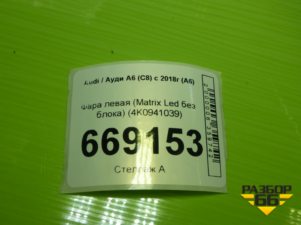 Фара левая (Matrix Led без блока) (4K0941039) для Audi A6 (C8) с 2018г (А6) в Екатеринбурге