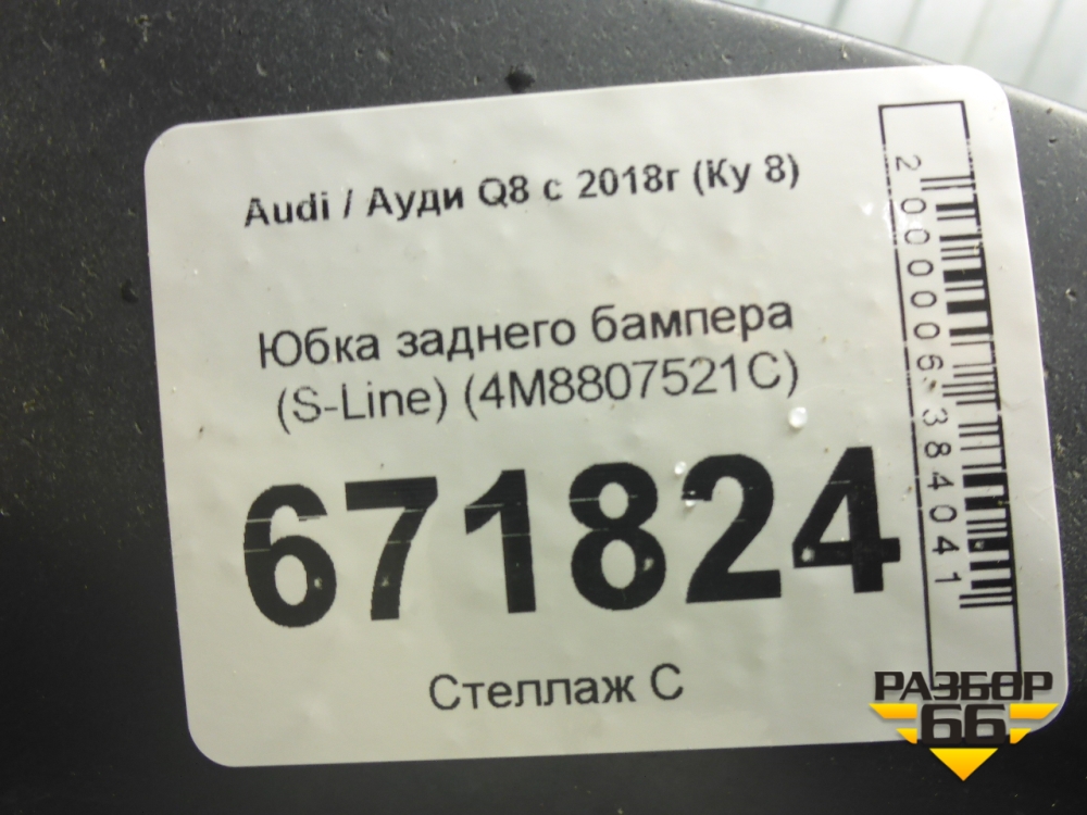 Юбка заднего бампера (S-Line) (4M8807521C) для Audi Q8 с 2018г (Ку 8) в Екатеринбурге