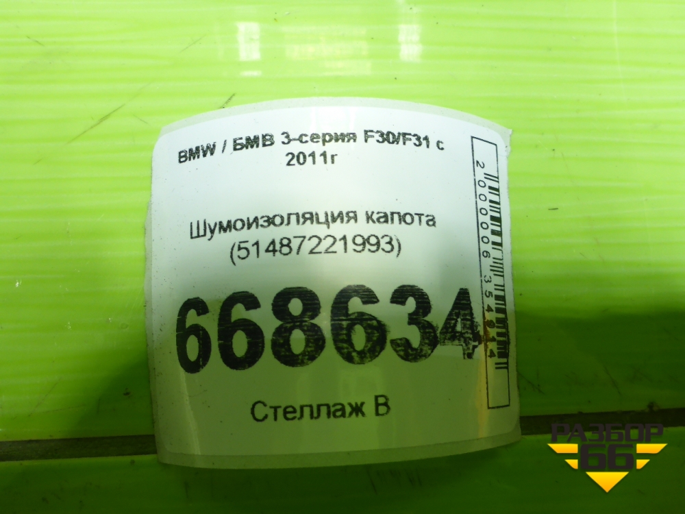 Шумоизоляция капота (51487221993) для BMW 3-серия F30/F31 с 2011г в Екатеринбурге