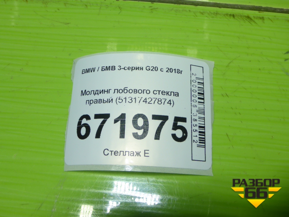 Молдинг лобового стекла правый (51317427874) для BMW 3-серия G20 с 2018г в Екатеринбурге