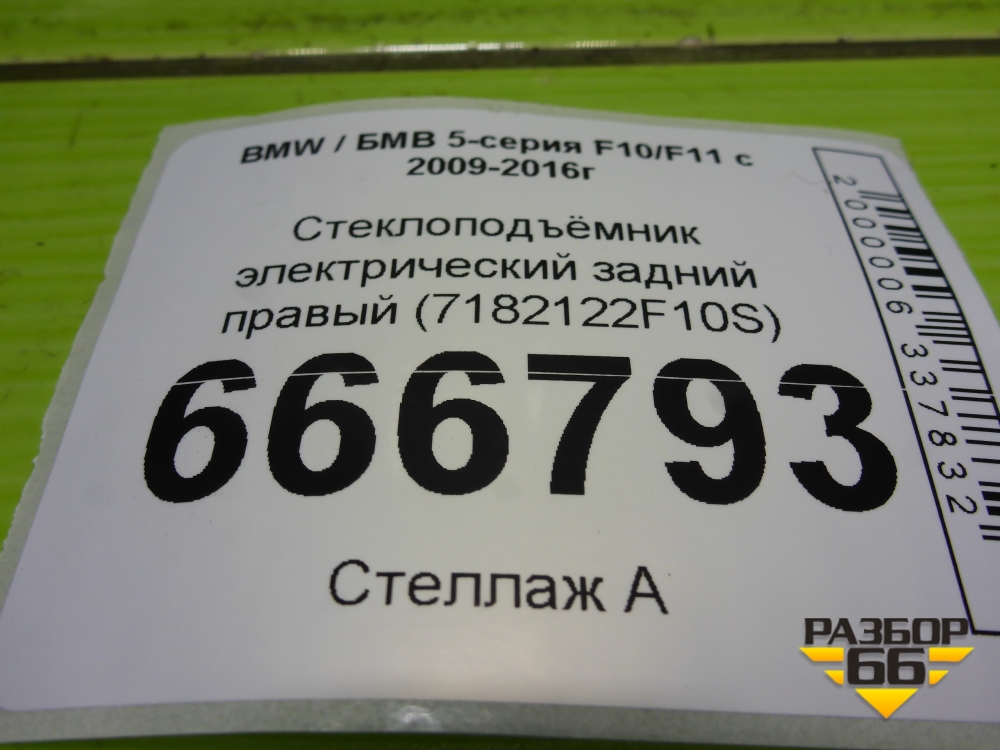 Стеклоподъёмник электрический задний правый (7182122F10S) для BMW 5-серия F10/F11 с 2009-2016г в Екатеринбурге