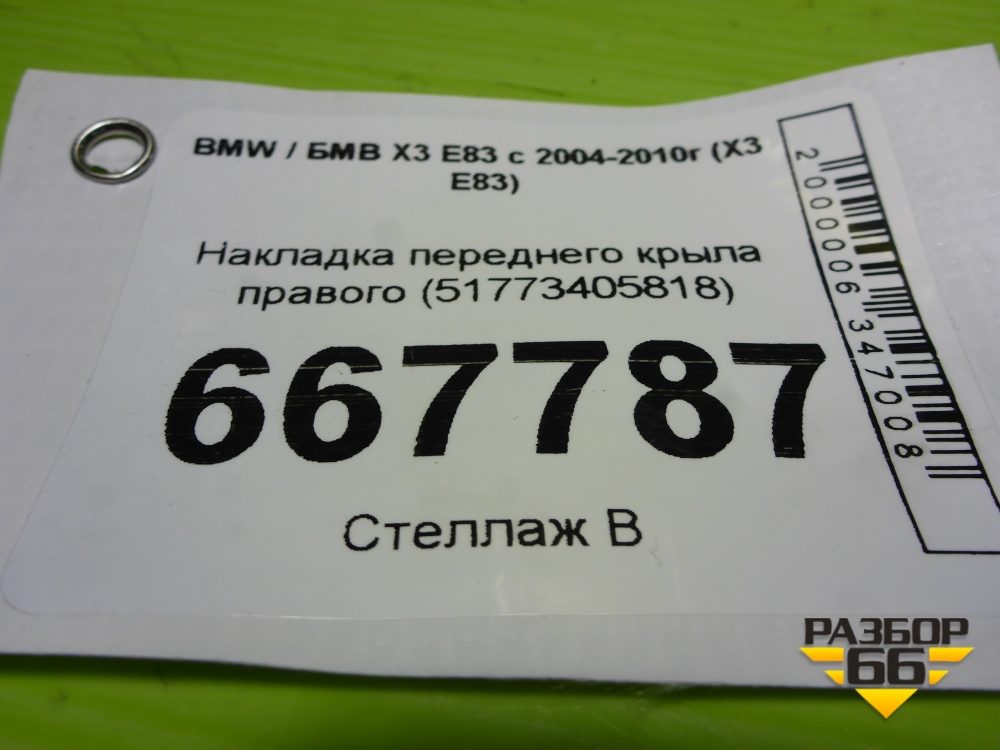 Накладка переднего крыла правого (51773405818) для BMW X3 E83 с 2004-2010г (Х3 Е83) в Екатеринбурге