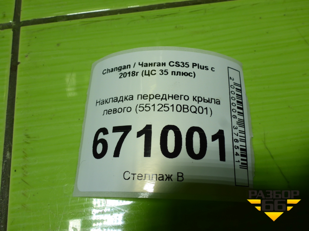 Накладка переднего крыла левого (5512510BQ01) для Changan CS35 Plus с 2018г (ЦС 35 плюс) в Екатеринбурге