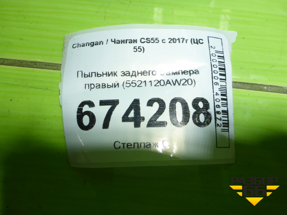 Пыльник заднего бампера правый (5521120AW20) для Changan CS55 c 2017г (ЦС 55) в Екатеринбурге
