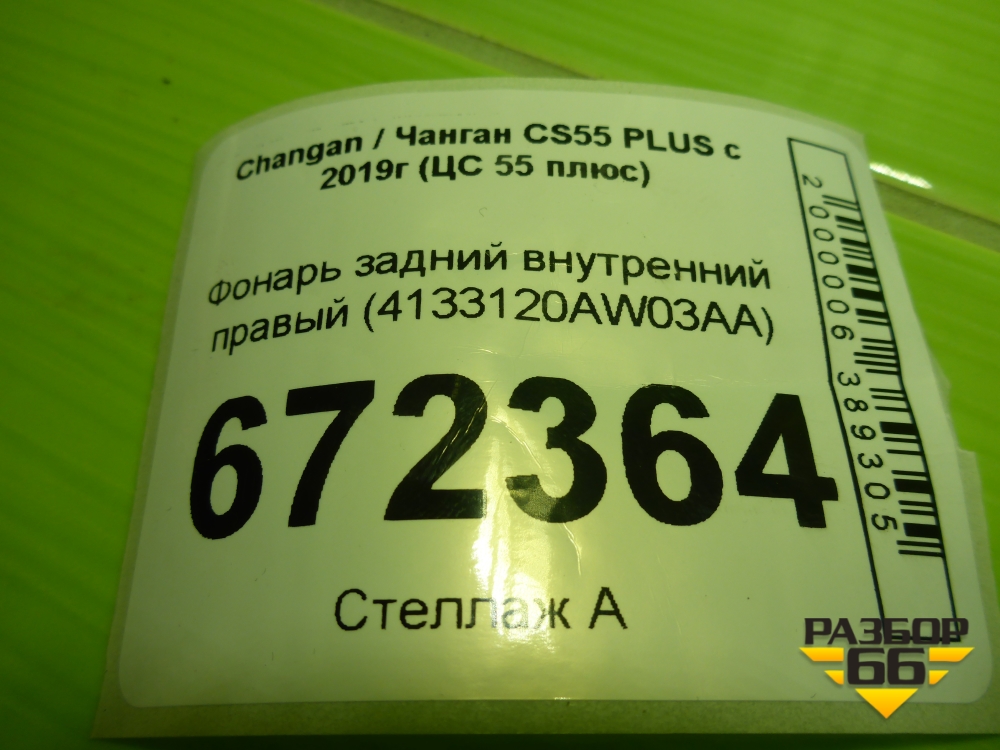 Фонарь задний внутренний правый (4133120AW03AA) для Changan CS55 PLUS с 2019г (ЦС 55 плюс) в Екатеринбурге