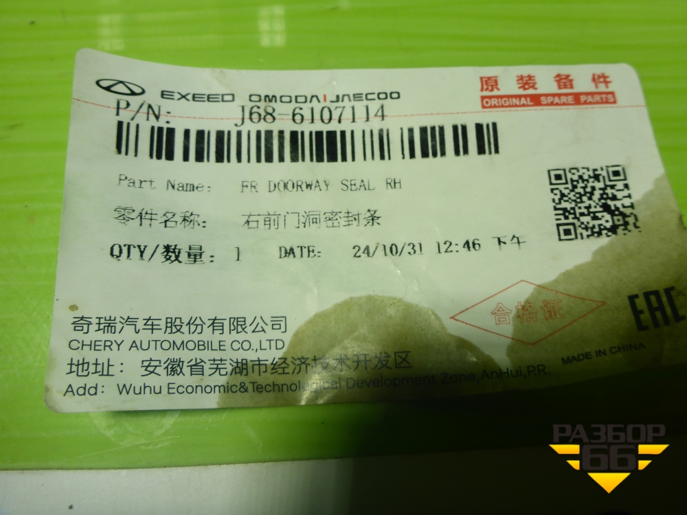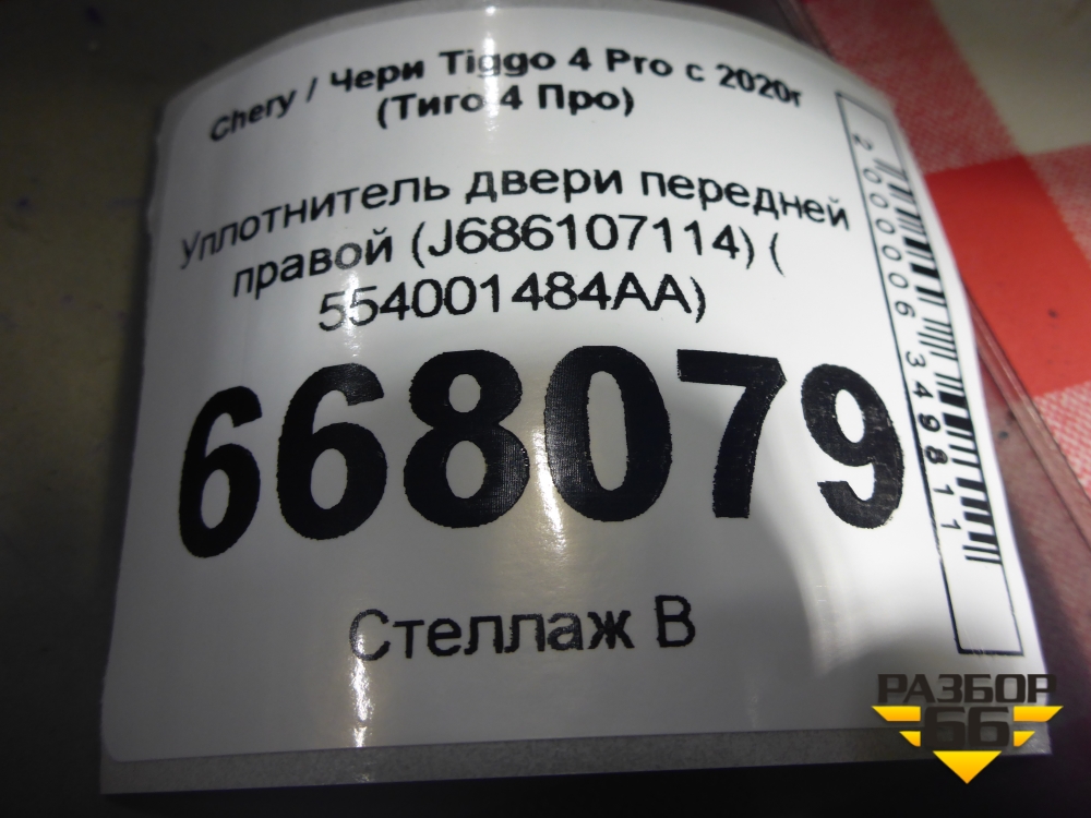 Уплотнитель двери передней правой (на кузов) (J686107114 554001484AA) для Chery Tiggo 4 Pro с 2020г (Тиго 4 Про) в Екатеринбурге