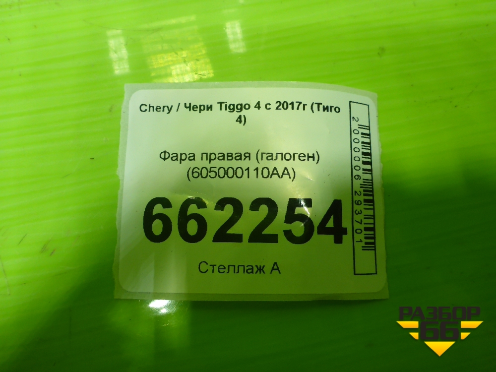 Фара правая (галоген) (605000110AA) для Chery Tiggo 4 с 2017г (Тиго 4) в Екатеринбурге