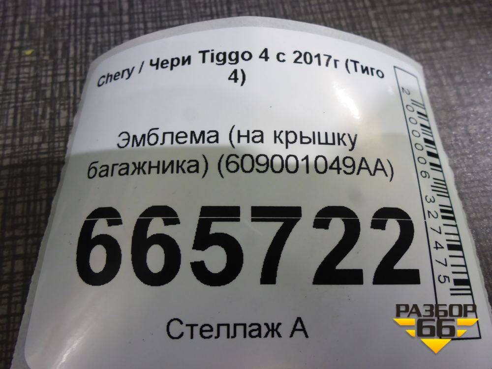 Эмблема (на крышку багажника) (609001049AA) для Chery Tiggo 4 с 2017г (Тиго 4) в Екатеринбурге