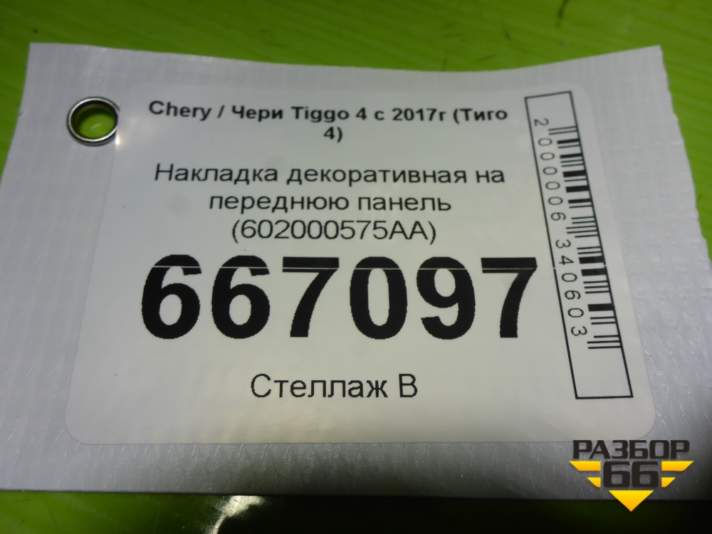 Накладка декоративная на переднюю панель (602000575AA) для Chery Tiggo 4 с 2017г (Тиго 4) в Екатеринбурге