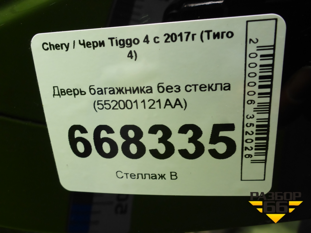 Дверь багажника без стекла (552001121AA) для Chery Tiggo 4 с 2017г (Тиго 4) в Екатеринбурге