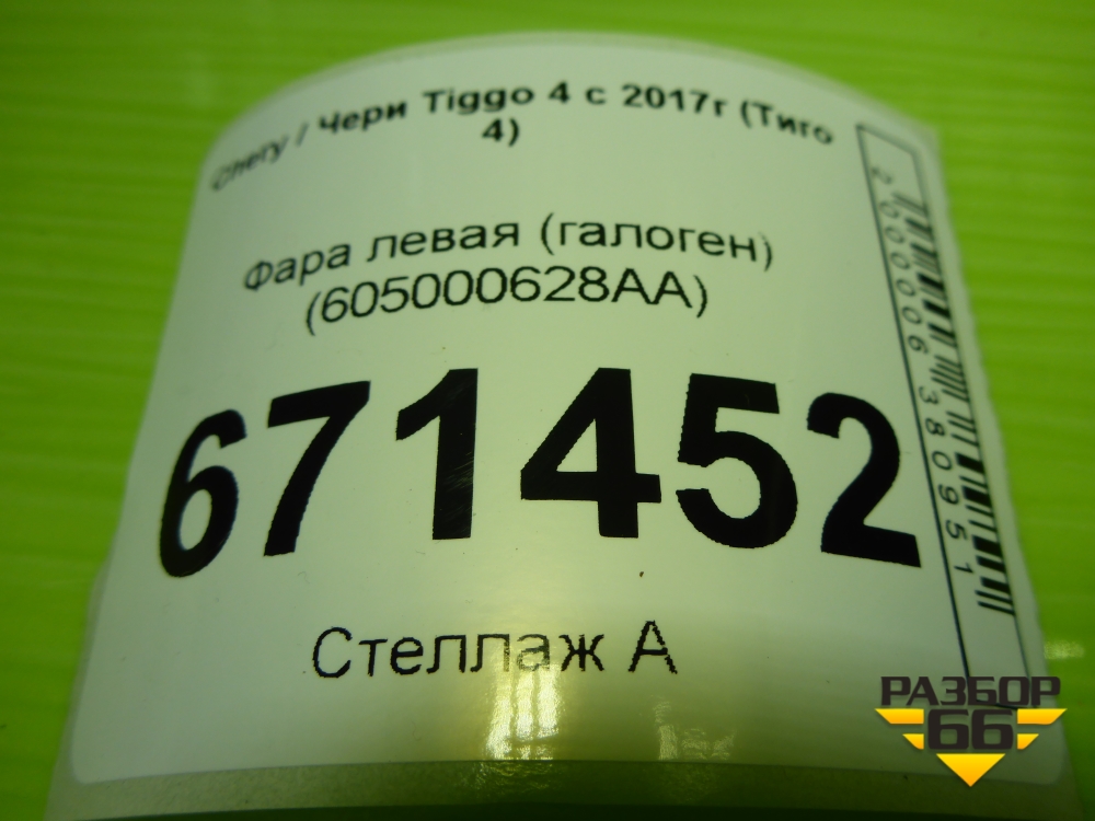 Фара левая (галоген) (605000628AA) для Chery Tiggo 4 с 2017г (Тиго 4) в Екатеринбурге