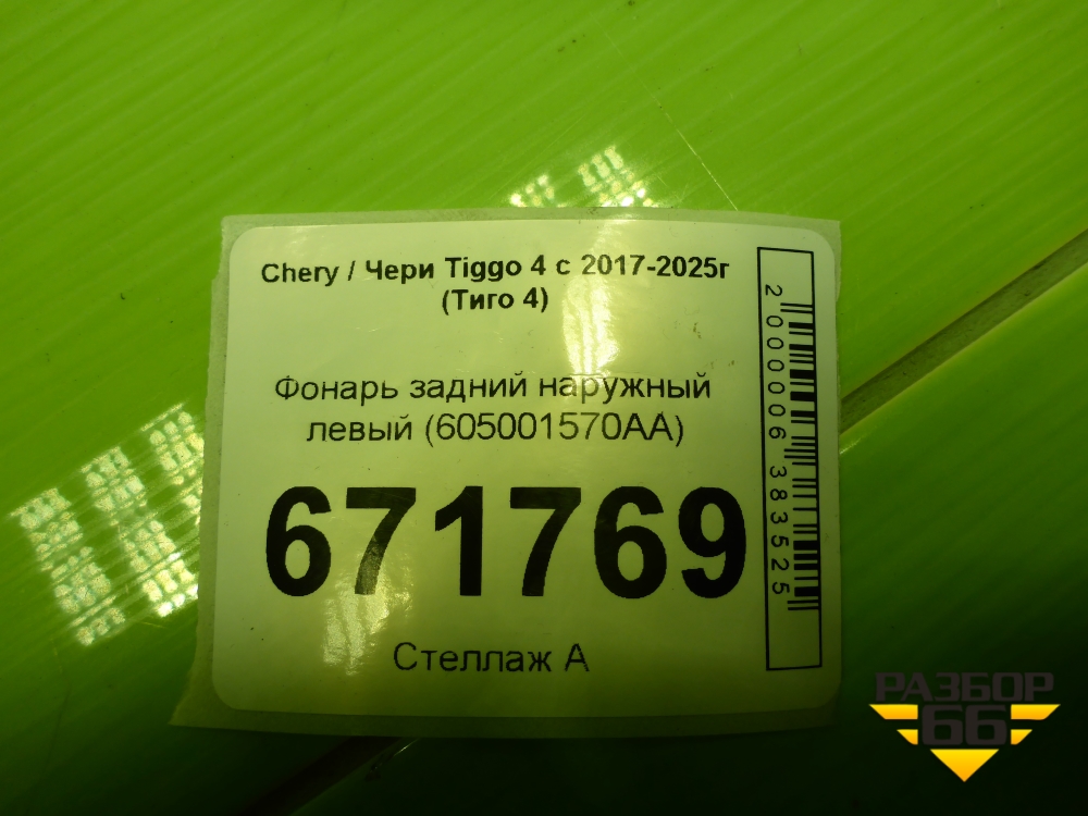 Фонарь задний наружный левый (605001570AA) для Chery Tiggo 4 с 2017-2025г (Тиго 4) в Екатеринбурге