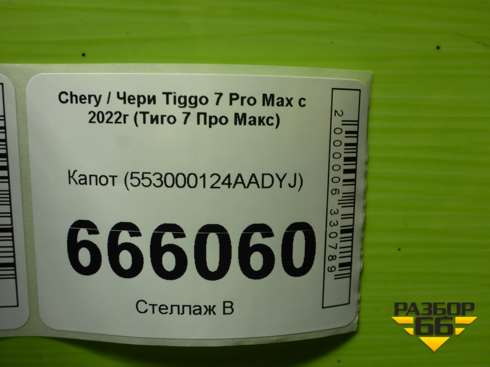 Капот (553000124AADYJ) для Chery Tiggo 7 Pro Max с 2022г (Тиго 7 Про Макс) в Екатеринбурге