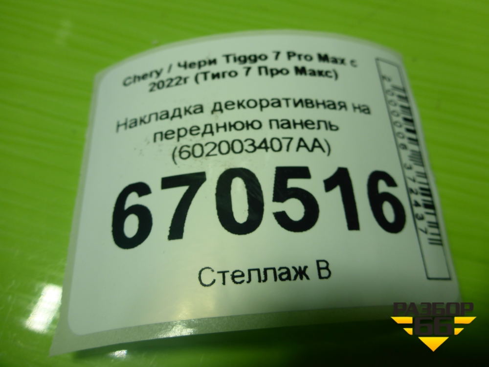 Накладка декоративная на переднюю панель (602003407AA) для Chery Tiggo 7 Pro Max с 2022г (Тиго 7 Про Макс) в Екатеринбурге