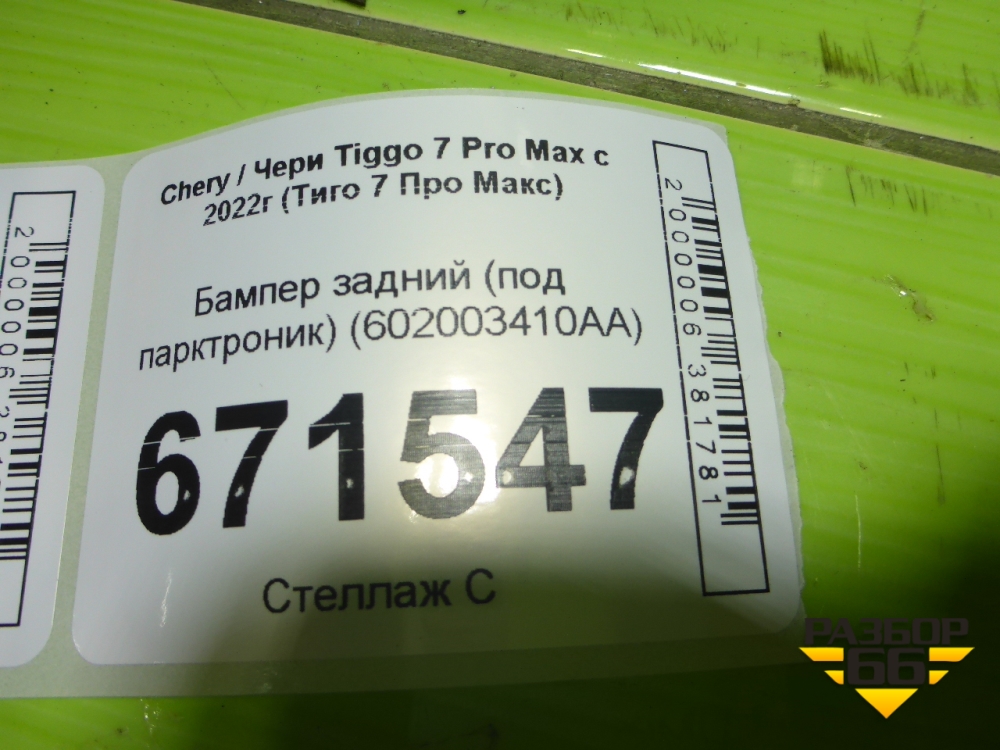 Бампер задний (под парктроник) (602003410AA) для Chery Tiggo 7 Pro Max с 2022г (Тиго 7 Про Макс) в Екатеринбурге