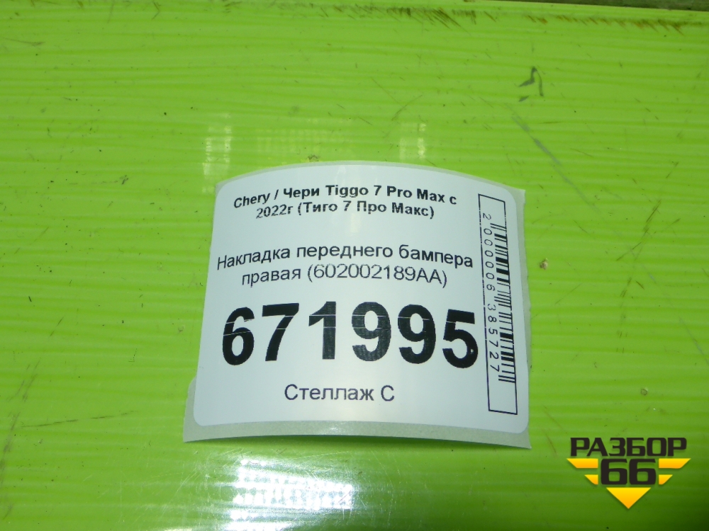 Накладка переднего бампера правая (602002189AA) для Chery Tiggo 7 Pro Max с 2022г (Тиго 7 Про Макс) в Екатеринбурге