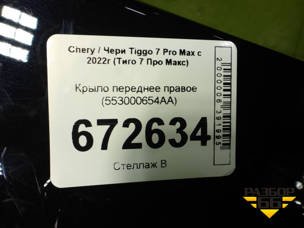 Крыло переднее правое (553000654AA) для Chery Tiggo 7 Pro Max с 2022г (Тиго 7 Про Макс) в Екатеринбурге