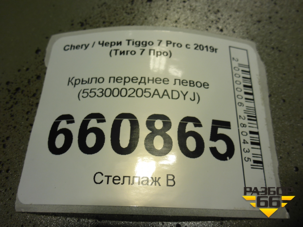 Крыло переднее левое (553000205AADYJ) для Chery Tiggo 7 Pro с 2019г (Тиго 7 Про) в Екатеринбурге