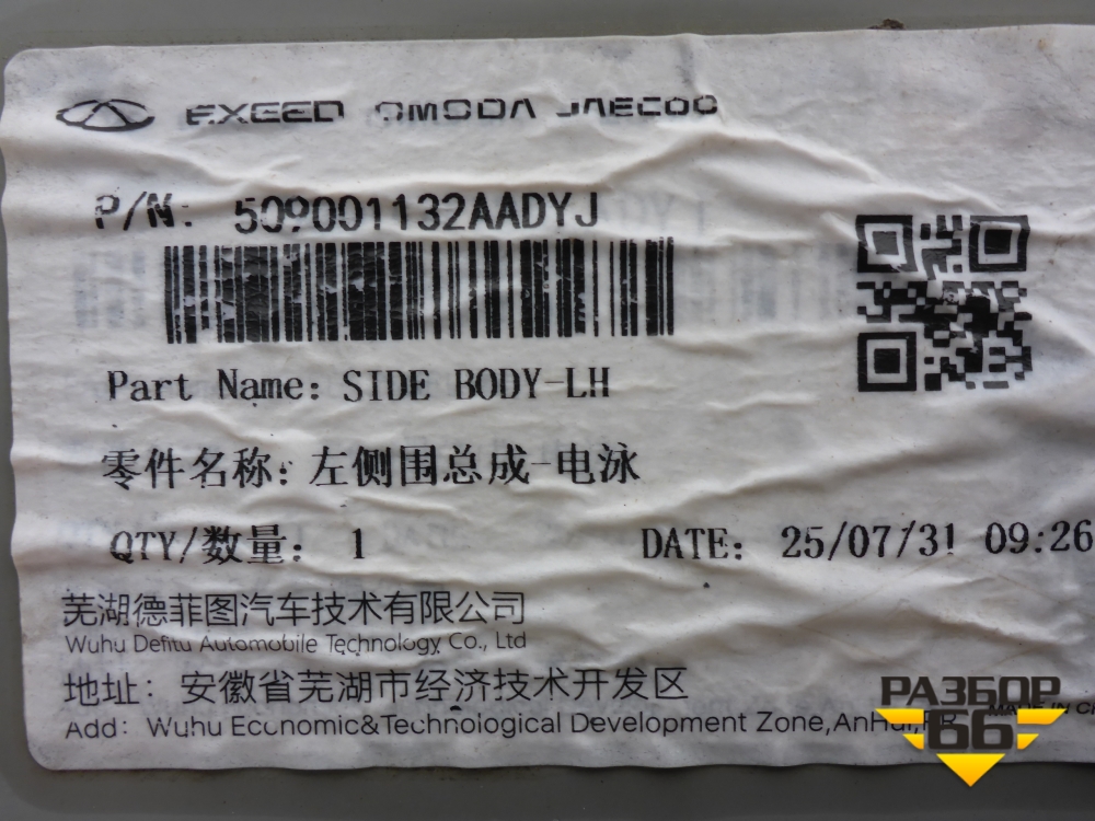 Боковина кузова левая (новая) (509001132AADYJ) для Chery Tiggo 7 Pro с 2019г (Тиго 7 Про) в Екатеринбурге