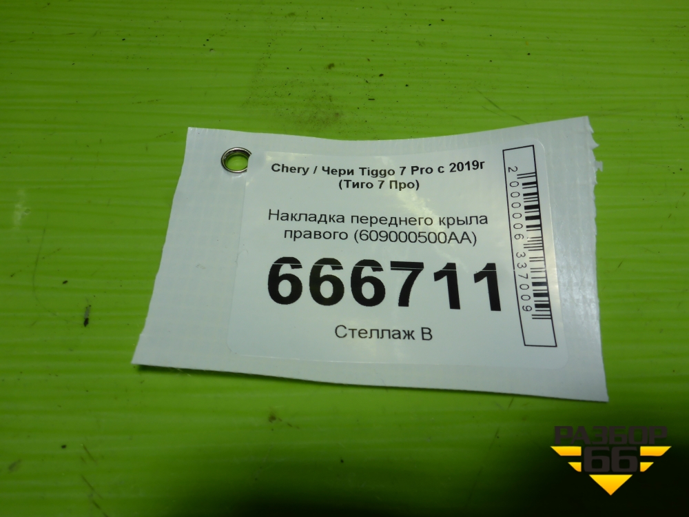 Накладка переднего крыла правого (609000500AA) для Chery Tiggo 7 Pro с 2019г (Тиго 7 Про) в Екатеринбурге