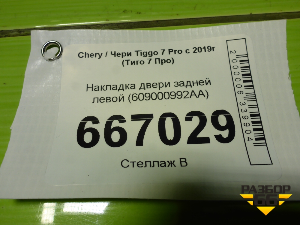 Накладка двери задней левой (609000992AA) для Chery Tiggo 7 Pro с 2019г (Тиго 7 Про) в Екатеринбурге