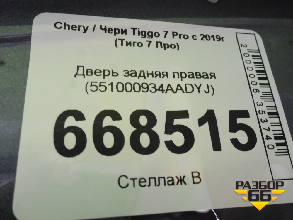 Дверь задняя правая (551000934AADYJ) для Chery Tiggo 7 Pro с 2019г (Тиго 7 Про) в Екатеринбурге