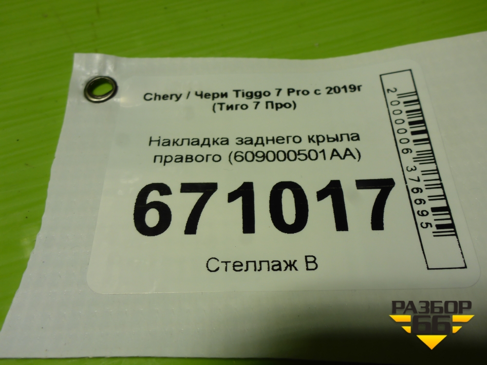 Накладка заднего крыла правого (609000501AA) для Chery Tiggo 7 Pro с 2019г (Тиго 7 Про) в Екатеринбурге