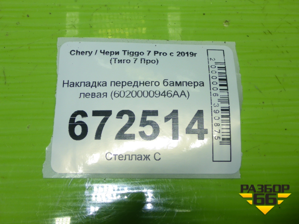 Накладка переднего бампера левая (6020000946AA) для Chery Tiggo 7 Pro с 2019г (Тиго 7 Про) в Екатеринбурге