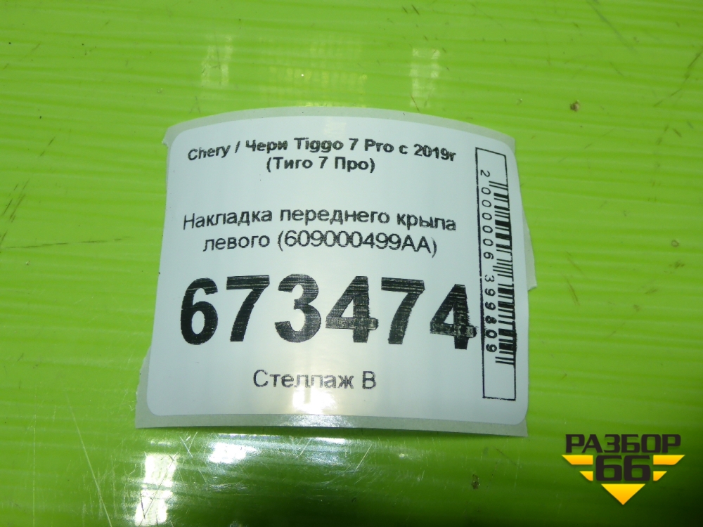 Накладка переднего крыла левого (609000499AA) для Chery Tiggo 7 Pro с 2019г (Тиго 7 Про) в Екатеринбурге
