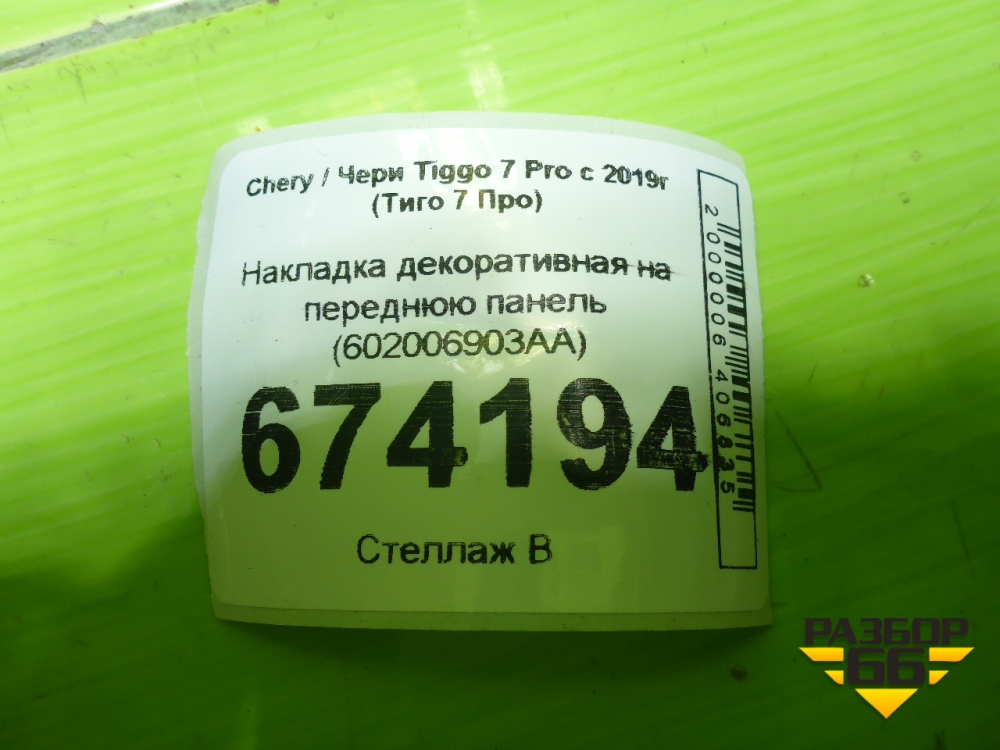 Накладка декоративная на переднюю панель (602006903AA) для Chery Tiggo 7 Pro с 2019г (Тиго 7 Про) в Екатеринбурге