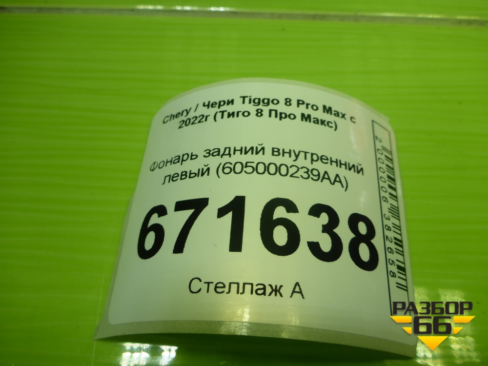 Фонарь задний внутренний левый (605000238AA) для Chery Tiggo 8 Pro Max с 2022г (Тиго 8 Про Макс) в Екатеринбурге