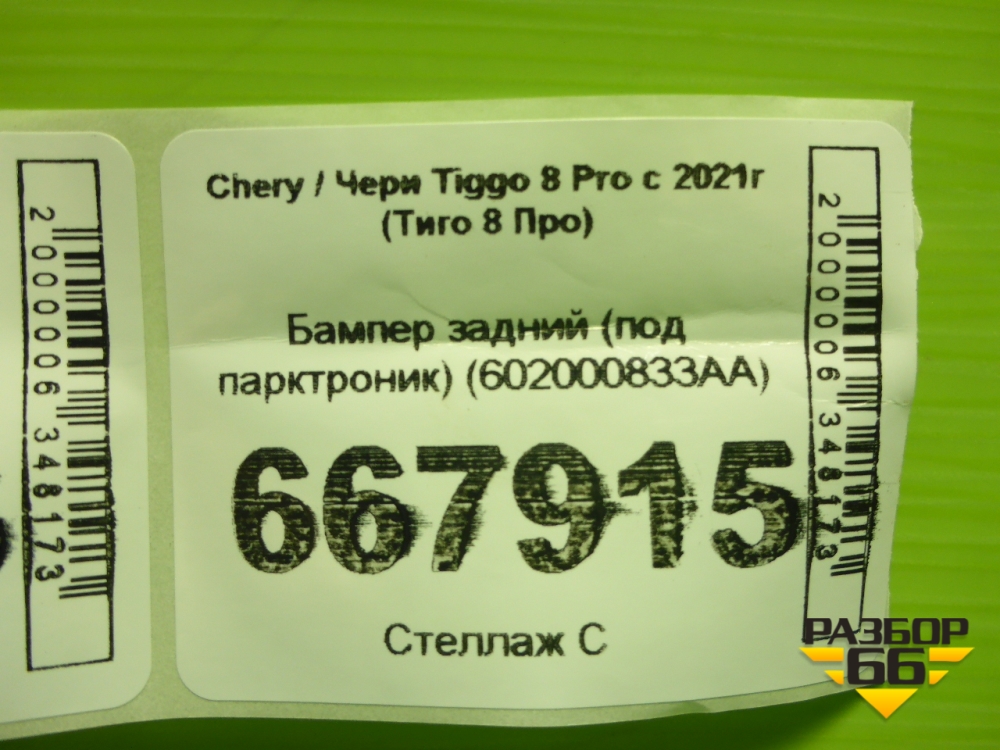 Бампер задний (под парктроник) (602000833AA) для Chery Tiggo 8 Pro с 2021г (Тиго 8 Про) в Екатеринбурге