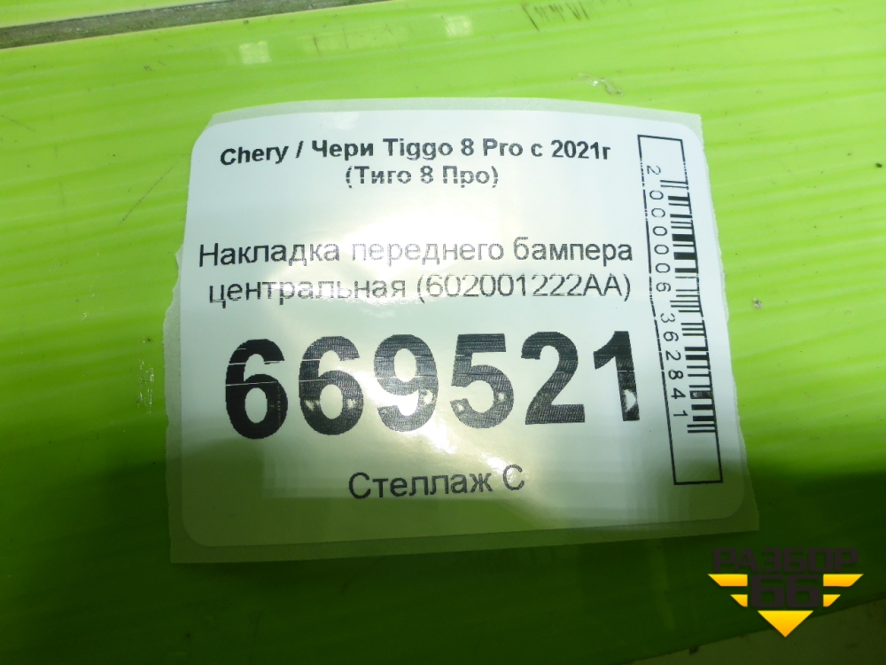 Накладка переднего бампера центральная (602001222AA) для Chery Tiggo 8 Pro с 2021г (Тиго 8 Про) в Екатеринбурге