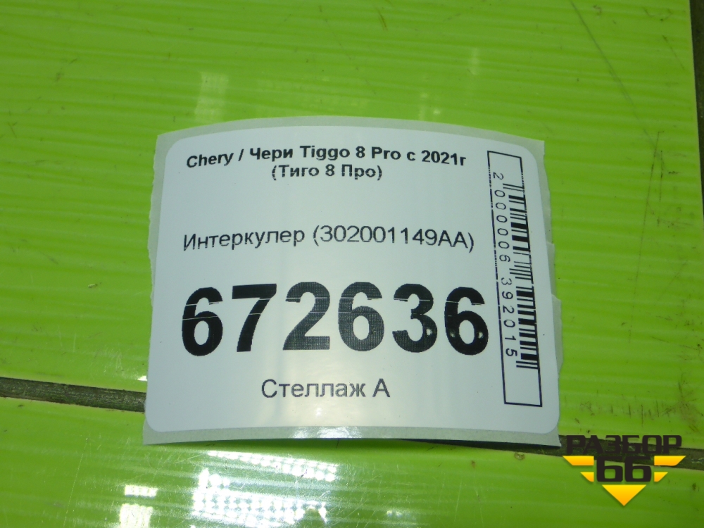Интеркулер (302001149AA) для Chery Tiggo 8 Pro с 2021г (Тиго 8 Про) в Екатеринбурге